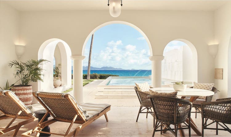 Nearby, Cap Juluca has three- and five-bedroom villas that offer optimal seclusion for family and friends traveling together. The multi-story pool villas include a full kitchen with a dining atrium for private meals, direct beach access, and a personal freshwater swimming pool.